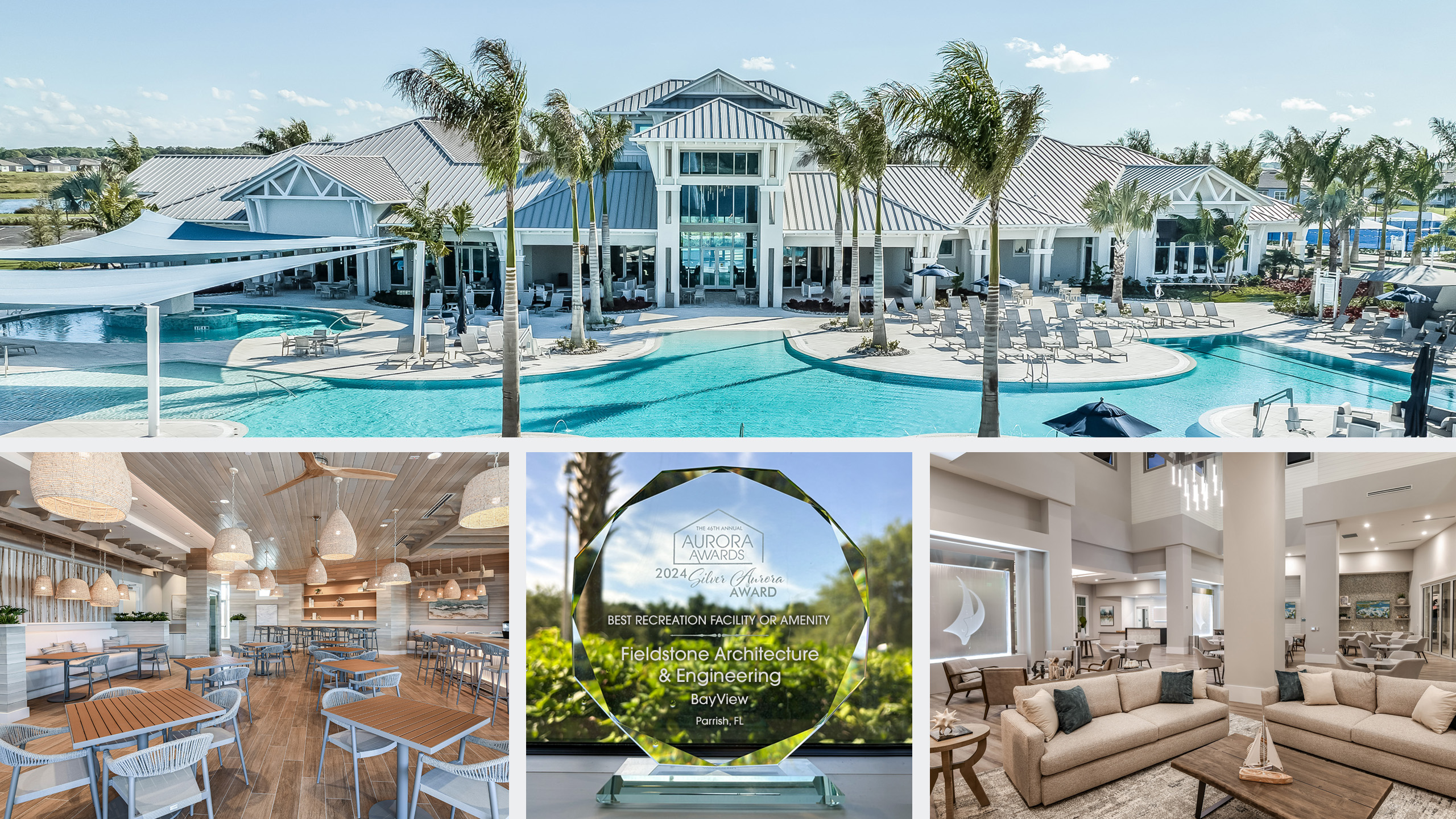 We are thrilled to announce that Fieldstone Architecture and Engineering has been recognized as a Silver Award Winner for Best Recreation Facility or Amenity at the prestigious 2024 Aurora Awards. This accolade, presented at the Southeast Building Conference (SEBC) in Orlando, celebrates outstanding achievements in the residential, commercial, and remodeling design sectors across the Southeastern United States and the Caribbean. This award was granted for our work on the BayView Amenity Campus project, a collaboration with Pulte West Florida Division and General Contractor R.E. Floyd.