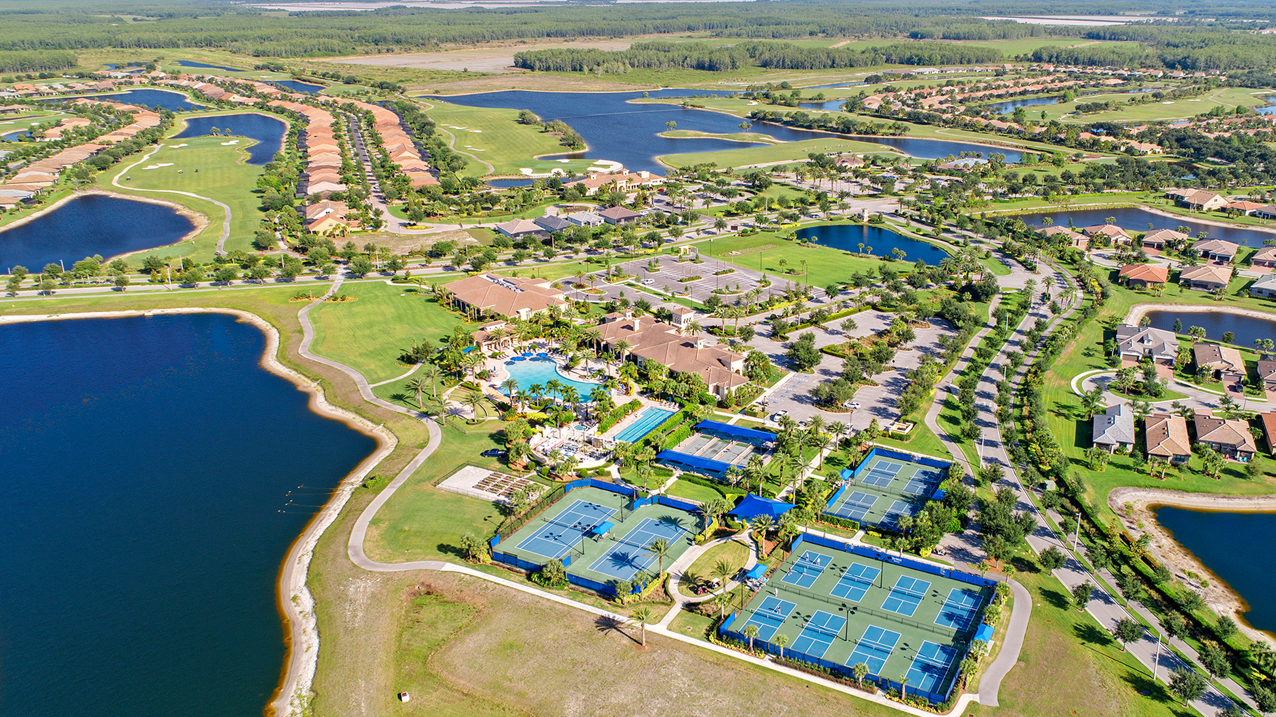 The Four Seasons at Orlando Amenity Campus sits adjacent to the 9th tee of the Mystic Dunes Golf Club.